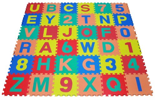 !9#eWonderWorld Children Alphabet Letters and Counting Numbers (A-Z, 0-9) Soft Mat - Each Tile: 12" X 12" X ~5/8" Thick